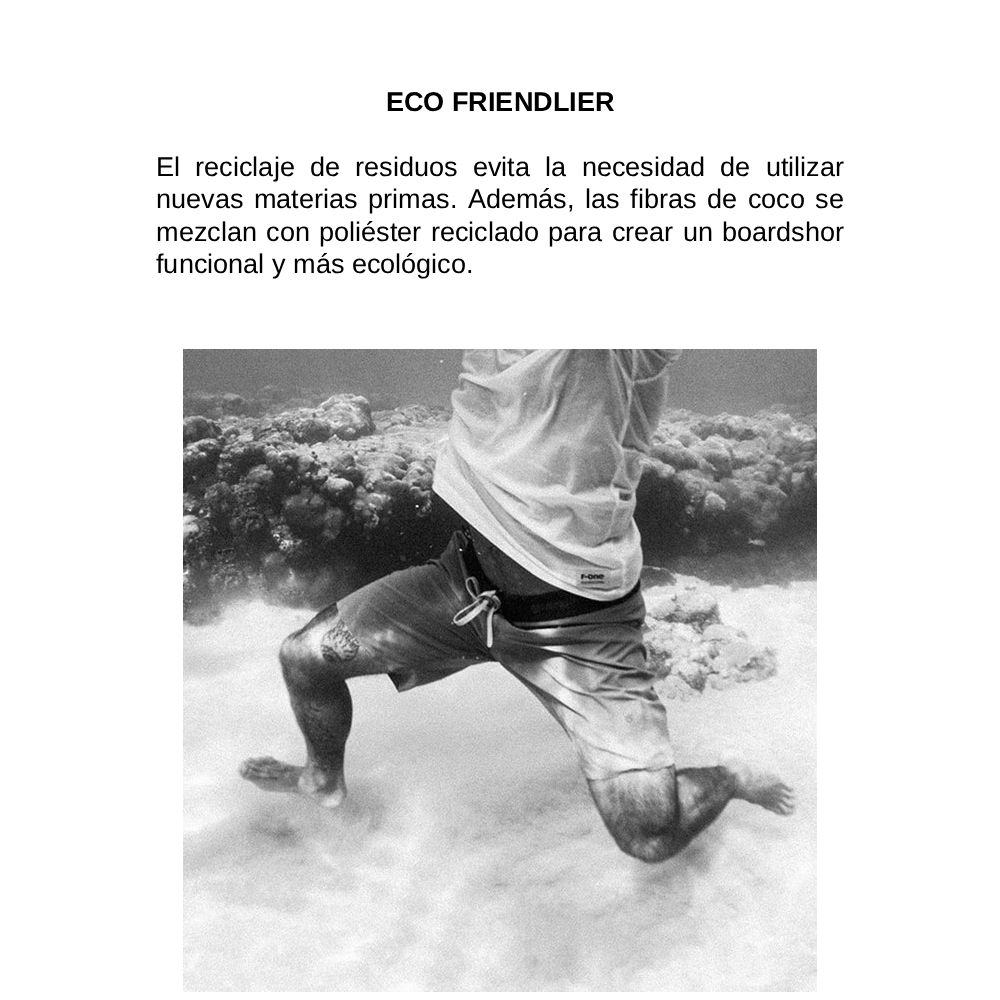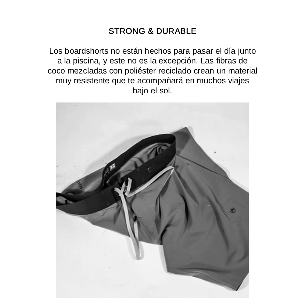 El boardshort más técnico ahora está confeccionado con Cocotex, un material innovador a base de fibras de coco. Estas fibras, que normalmente se desechan tras el uso de la pulpa, se transforman en carbón activado, creando un tejido funcional, resistente y sostenible para tus sesiones de surf.
